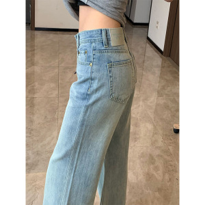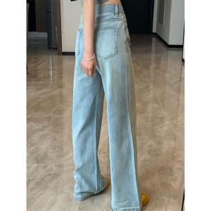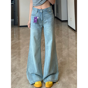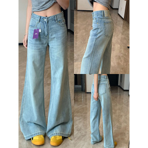 浅蓝色微喇叭牛仔裤女夏季新款水洗高腰宽松阔腿显瘦直筒拖地裤子