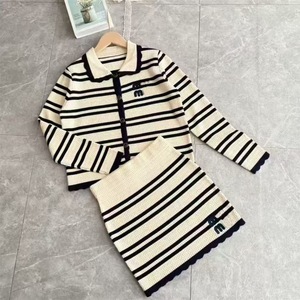 2025早秋新款学院风撞色条纹针织开衫外套+半身裙套装女两件套女