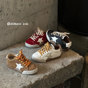 儿童真皮复古做旧小脏鞋2025秋季新款男女童五角星低帮板鞋休闲鞋