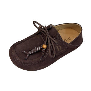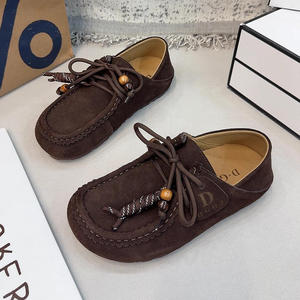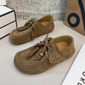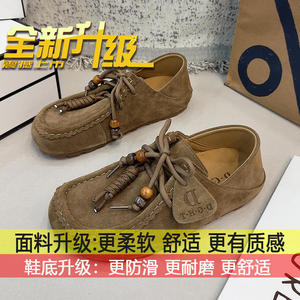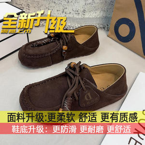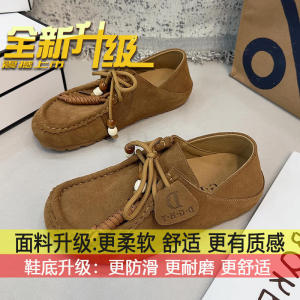 一脚蹬勃肯鞋平底女鞋2025春秋新款磨砂系带流苏软底乐福鞋豆豆鞋
