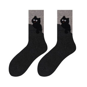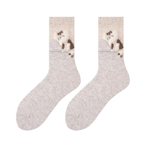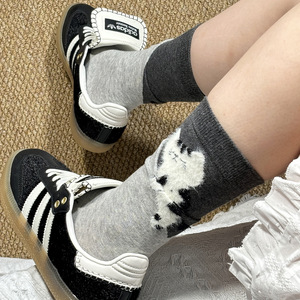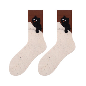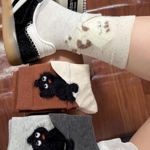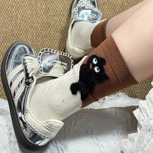 小猫袜子女中筒袜ins潮春秋季百搭2025新款爆款植绒卡通可爱长袜