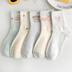 一体机秋冬新品新款袜子女卡通袜子女水蓝色小狗长袜休闲高筒中筒