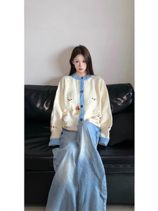 慵懒风可爱卡通学院风针织开衫韩版复古百搭针织毛衣外套女上衣潮