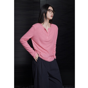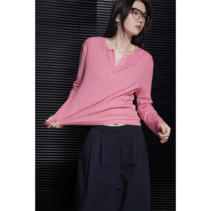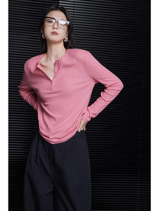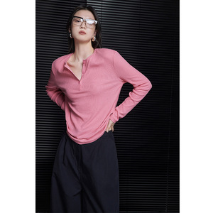 粉色修身长袖气质针织衫t恤女设计感小众2025早秋打底衫