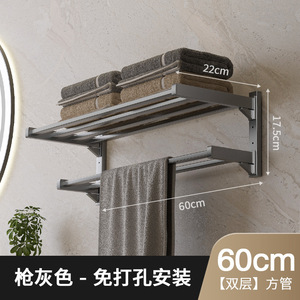 毛巾架卫生间免打孔浴室毛巾挂杆置物架洗手间壁挂式收纳浴巾架子