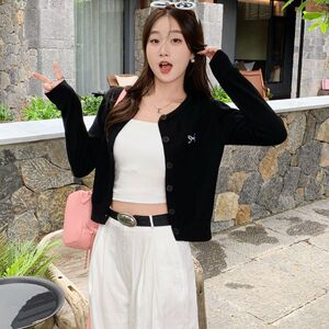 针织开衫女装2025新款韩系早秋穿搭薄款紫色上衣秋季外塔毛衣外套