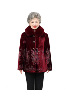 老年人冬装女棉服奶奶装冬季棉衣妈妈加绒加厚毛领外套老太太棉袄