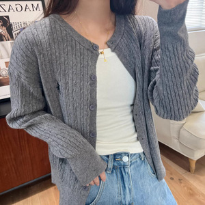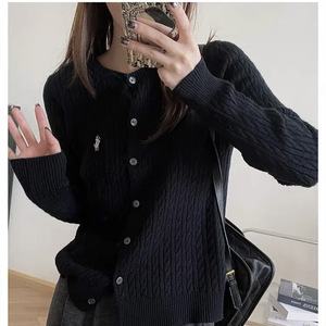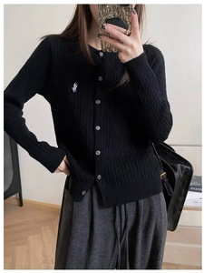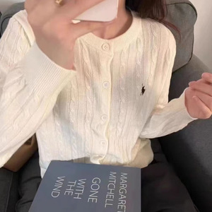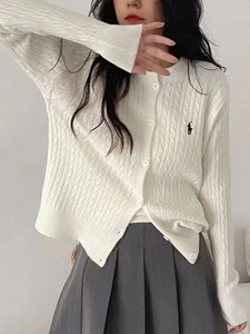 早秋设计感百搭长袖外套薄款拉夫劳伦针织衫麻花圆领开衫小马刺绣