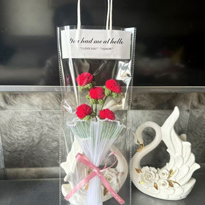透明网红礼品饰品手提袋石膏娃娃手提袋针织花简约时尚包装袋