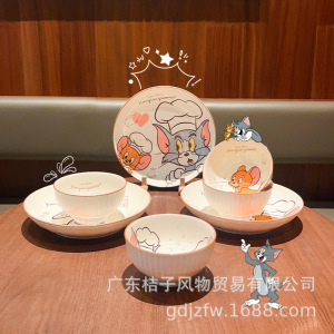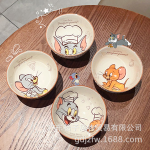 猫和老鼠陶瓷饭碗家用儿童吃饭碗2025高颜值米饭碗单个盘子菜盘