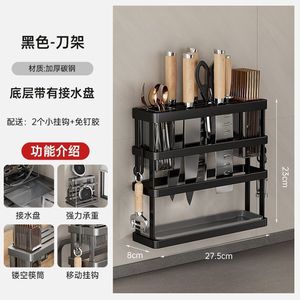 黑色一体式厨房置物架-【双筷筒壁挂款】刀架+挂钩