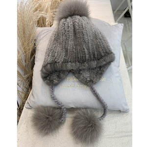 冬户外女式保暖水貂毛编织帽子貂皮护耳帽皮草狐狸毛三球带绳帽子