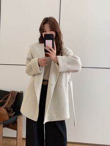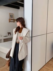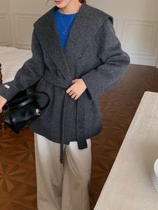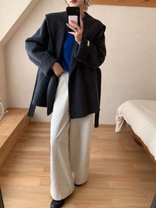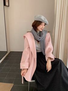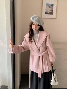 新款腰带双面羊毛大衣中长款系带海军方领双排扣加厚保暖毛呢外套