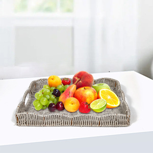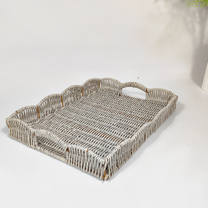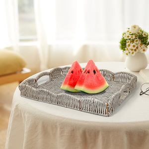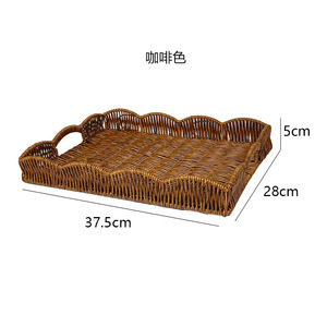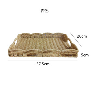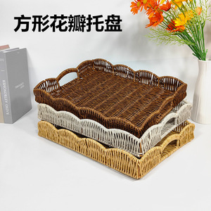 现代简约家用仿藤编水果篮展示塑胶桌面收纳筐托盘客厅仿藤面包篮
