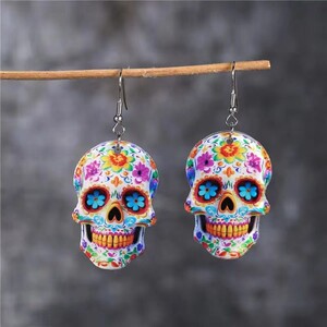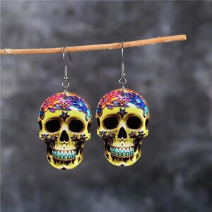时尚哥特式炫目多彩奇异女性头骨耳环嘻哈风万圣节朋克假日亚克力