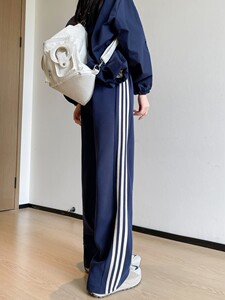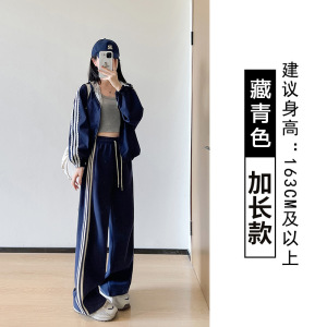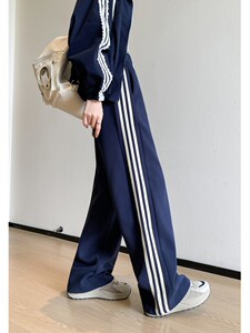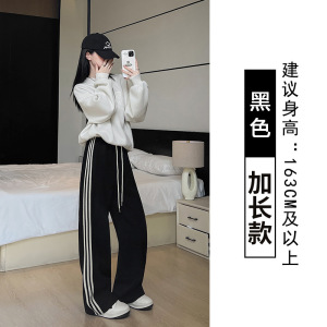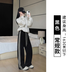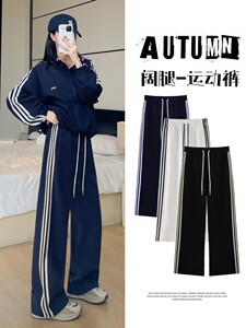 侧条纹美式运动裤女秋冬季2025新款高腰宽松直筒休闲裤显瘦阔腿裤