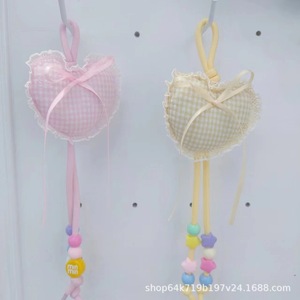 韩系ins风爱心包包挂绳蕾丝蝴蝶结可爱串珠挂件甜美格子钥匙装饰