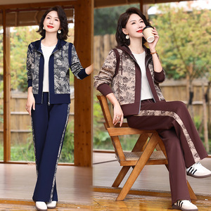 年轻妈妈秋装休闲套装2025新款连帽上衣外套中老年女装洋气运动服