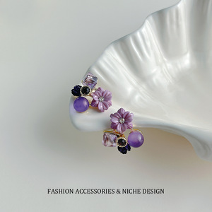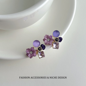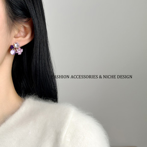 紫藤花梦复古超仙紫水晶立体花朵耳环女小众高级感精致耳钉耳饰
