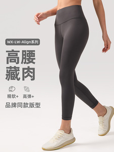 lulu瑜伽裤女磨毛裸感超高腰健身裤24"透气速干九分运动紧身裤