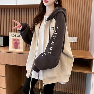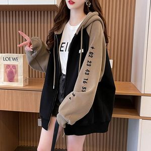 大码春秋薄款连帽开衫上衣外套女韩版宽松长袖保暖加绒卫衣潮