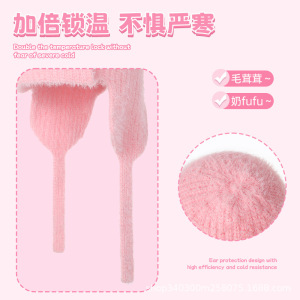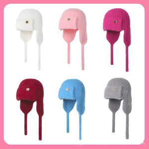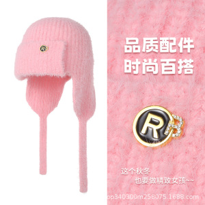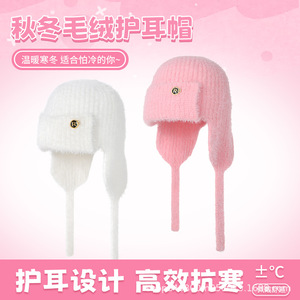 秋冬仿貂毛纯色绑带护耳毛线帽子女秋冬季学生百搭保暖针织雷锋帽