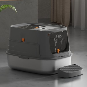 宠物不锈钢猫砂盆大号半封闭式加高防外溅猫厕所不粘底隔臭猫砂盆