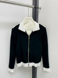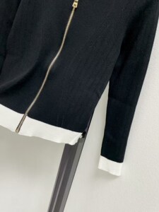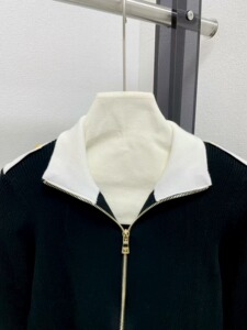 高定巴家25早秋季新款撞色立领修身显瘦拉链针织开衫上衣外套女