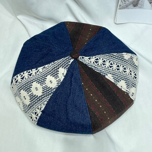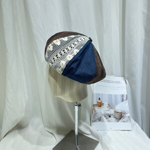 小众设计蕾丝拼接牛仔贝雷帽女时尚复古画家南瓜帽显脸小蓓蕾帽子
