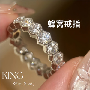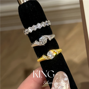 指间星球蜂窝戒指 | S925银镀金拉丝悬浮钻戒复古轻奢纯银排戒