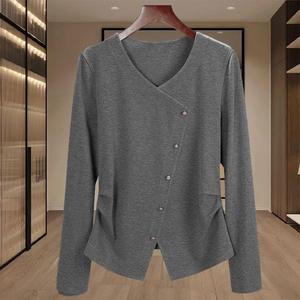300斤大码德绒正肩V领长袖t恤秋季大码胖mm显瘦收腰上衣打底衫女