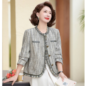 中年妈妈秋装小香风外套2025新款春秋洋气中老年女装宽松开衫上衣