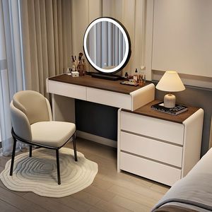 奶油风实木梳妆台胡桃色化妆台斗柜一体现代简约款化妆桌新款卧室