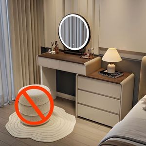 A3奶油白-60cm斗柜 、100桌+圆镜+柜(无凳)-优质