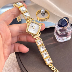 新款跨境复古手链手表菱形镶钻小方糖轻奢小众腕表首饰表外贸爆款