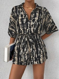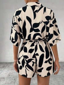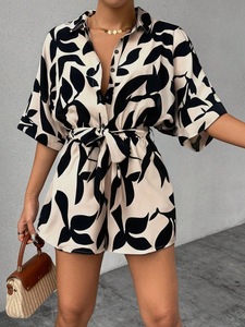 欧美女装缎面 秋季新款色丁连体裤女跨境印花宽松缎面阔腿连衣裤