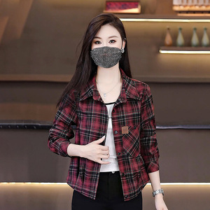 小个子短款格子衬衫外套女2025春秋新款复古港风减龄休闲百搭衬衣