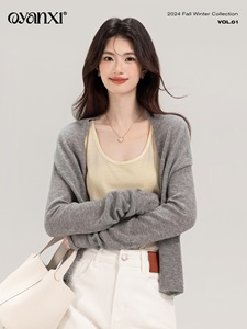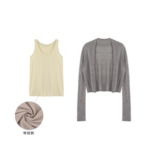 深灰色开衫加浅黄色背心两件套 (微透)预售