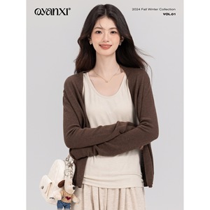 卡其色开衫加咖麦色背心两件套· (微透)现货