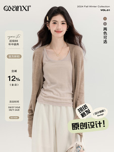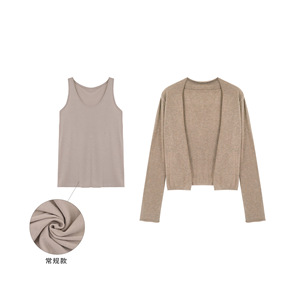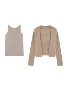 卡其色开衫加咖麦色背心两件套 (微透)预售