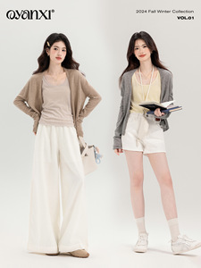 欧阳喜原创《 贩卖秋日》初秋通勤长袖开衫女宽松慵懒针织衫套装