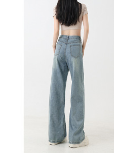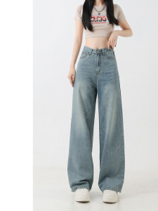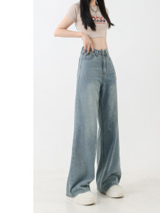 浅色刺绣阔腿牛仔裤女年夏薄款高腰宽松大码胖mm显瘦直筒裤子