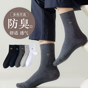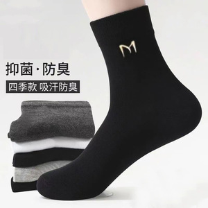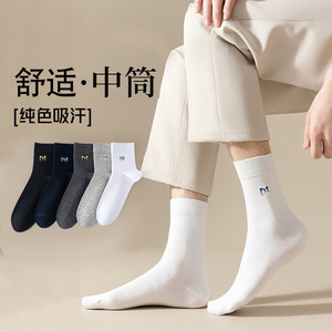 袜子男士中筒秋冬厚款棉袜纯色吸汗四季长筒透气男棉袜厂家
