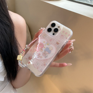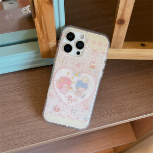 粉格纹甜品爱心双子星适用iPhone16苹果15ProMax/14/13手机壳新款