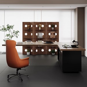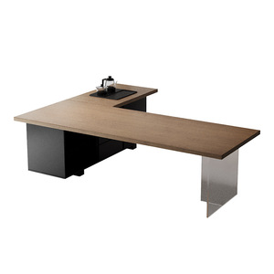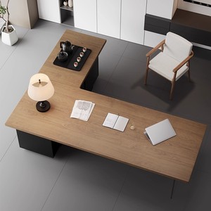 现代简约实木转角老板桌办公桌带茶台一体式2025新款电脑桌工作台