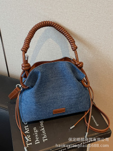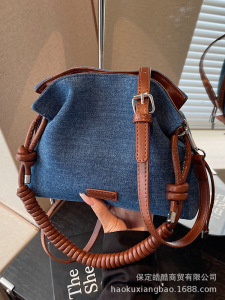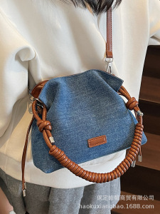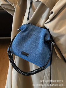 牛仔布手拎包包女式2025新款潮流行小众超火单肩腋下包斜挎水桶包