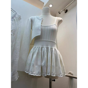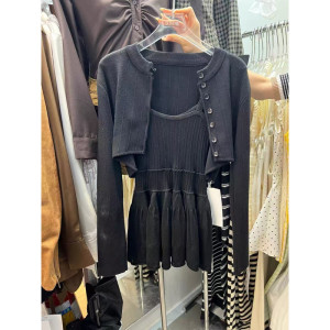 W2F十三行2025早秋新款小个子短款披肩开衫女吊带连衣裙针织两件