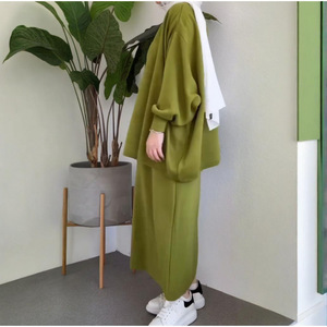 跨境穆斯林中东外贸女装2025秋季新款针织宽松休闲半身裙两件套女