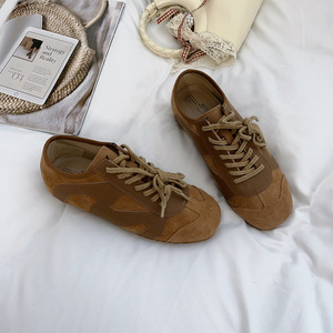 牛皮版~复古真皮百搭内增高德训鞋女新款平底板鞋运动休闲阿甘鞋