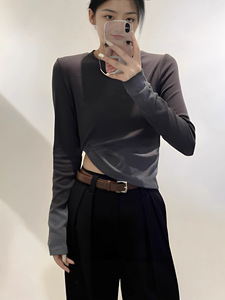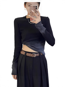 黑色渐变正肩长袖t恤女2025秋季显瘦独特体恤内搭chic上衣外穿